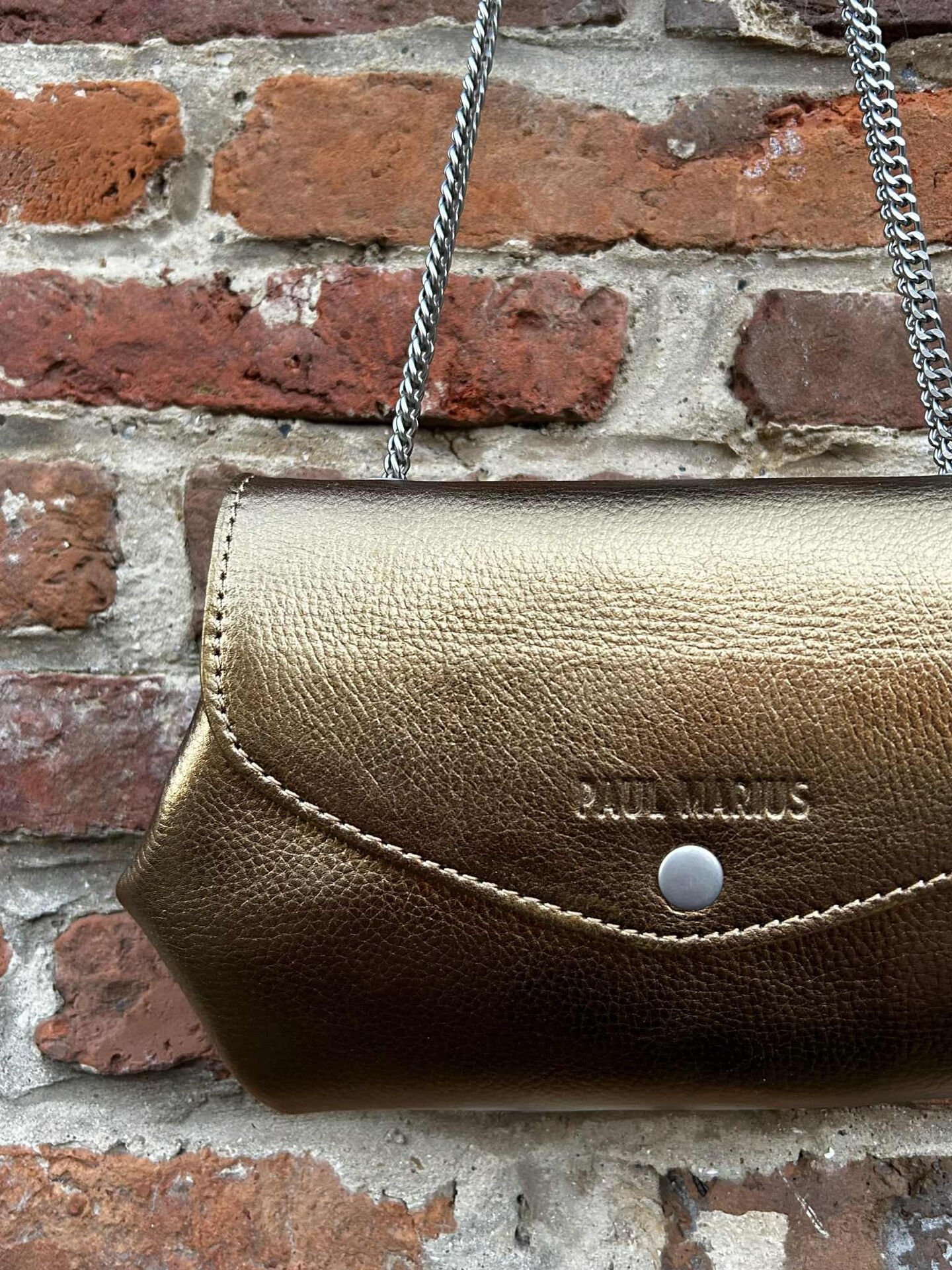 Ce joli petit sac pochette Paul Marius, le Gustave Pochette, séduit par son coloris bronze lumineux, reflet d’un chic assumé.