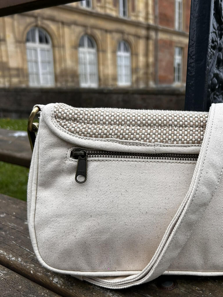 Venez découvrir un petit sac bandoulière Hindbag rempli de charme en coton bio. Ce modèle incarne l’alliance parfaite entre tendance et décontraction.