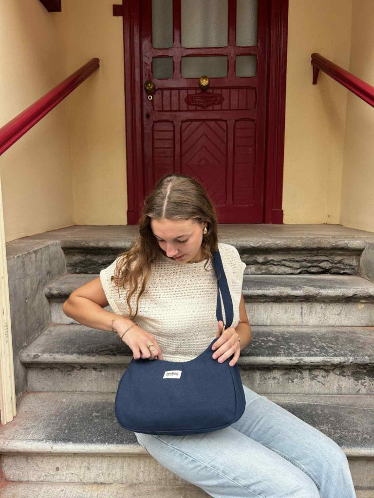 Confectionné en coton biologique labellisé GOTS, il séduit par sa texture douce, son anse réglable et sa poche extérieure pensée pour le quotidien.