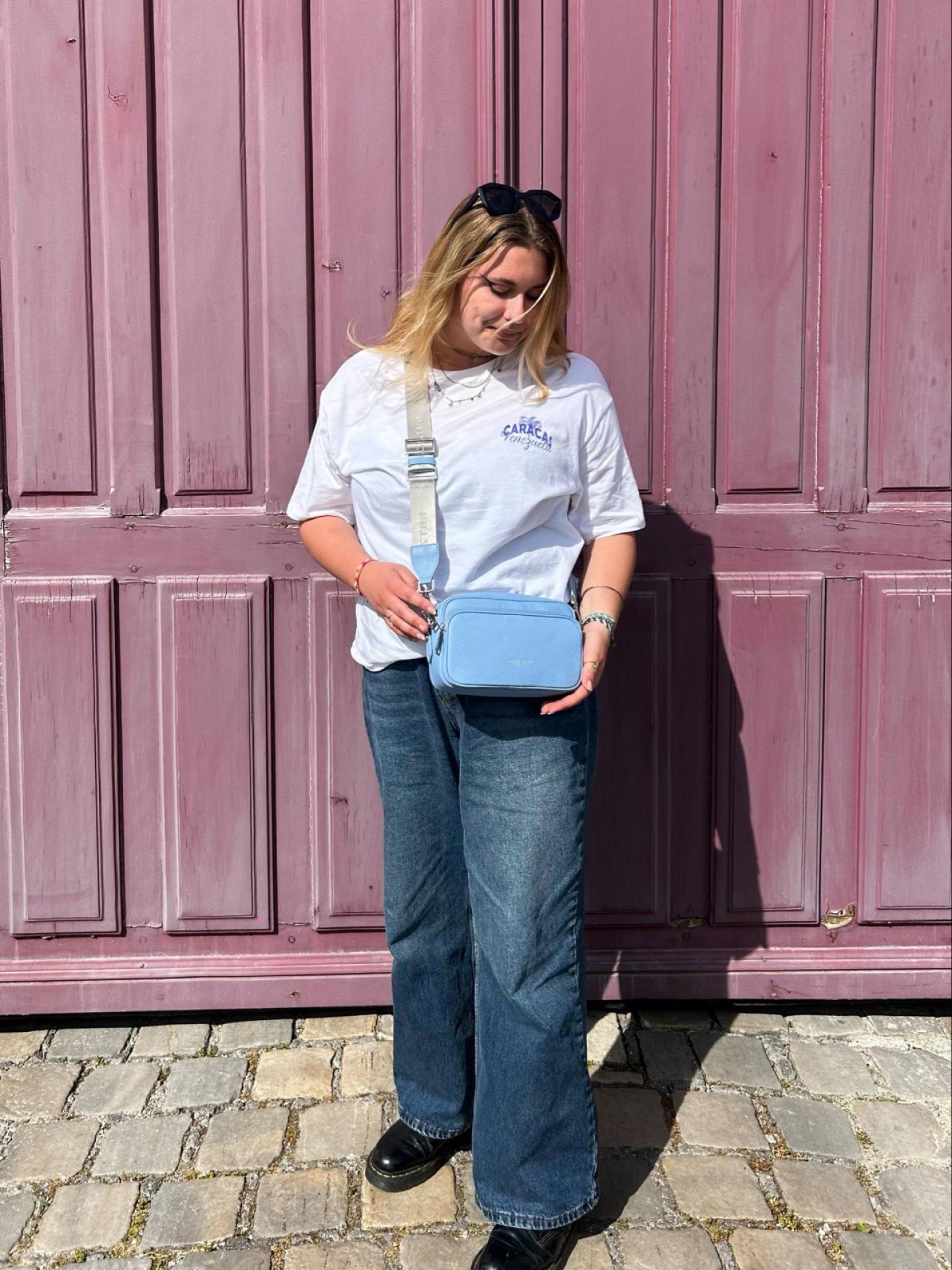 Pensé dans un cuir souple de belle qualité, ce sac trotteur pour l'été est compact mais fonctionnel. Il accompagnera les femmes actives, libres, qui savent que chaque détail compte. Son bleu ciel lumineux rehausse une silhouette avec subtilité, parfait pour flâner en vacances ou pour une escapade citadine.
