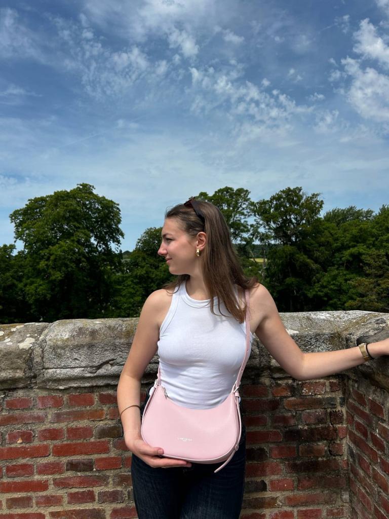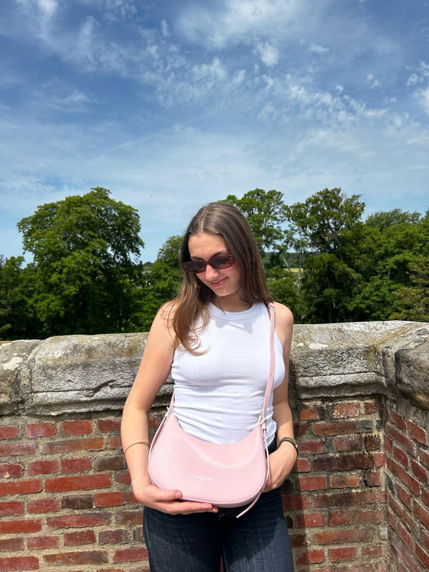 Le sac Lancaster en cuir de couleur rose fumé incarne l’élégance à l’état pur. Sa teinte poudrée et subtile évoque la douceur estivale. Ce sac demi-lune au format pratique et raffiné épouse la courbe du corps, tout en légèreté. Porté en bandoulière, il libère le mouvement avec allure. Il sera le compagnon idéal des journées ensoleillées, disponible chez Evasion.
