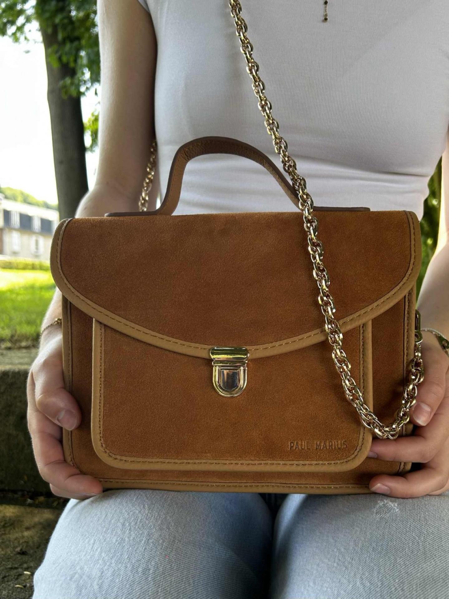 Le Sac Paul Marius Mademoiselle George N°2 révèle toute la noblesse d’un cuir suédé délicat, sublimé par une couleur fauve chaleureuse. Son toucher velouté, ses nuances douces, sa lumière subtile évoquent la nature et séduisent par leur élégance.
