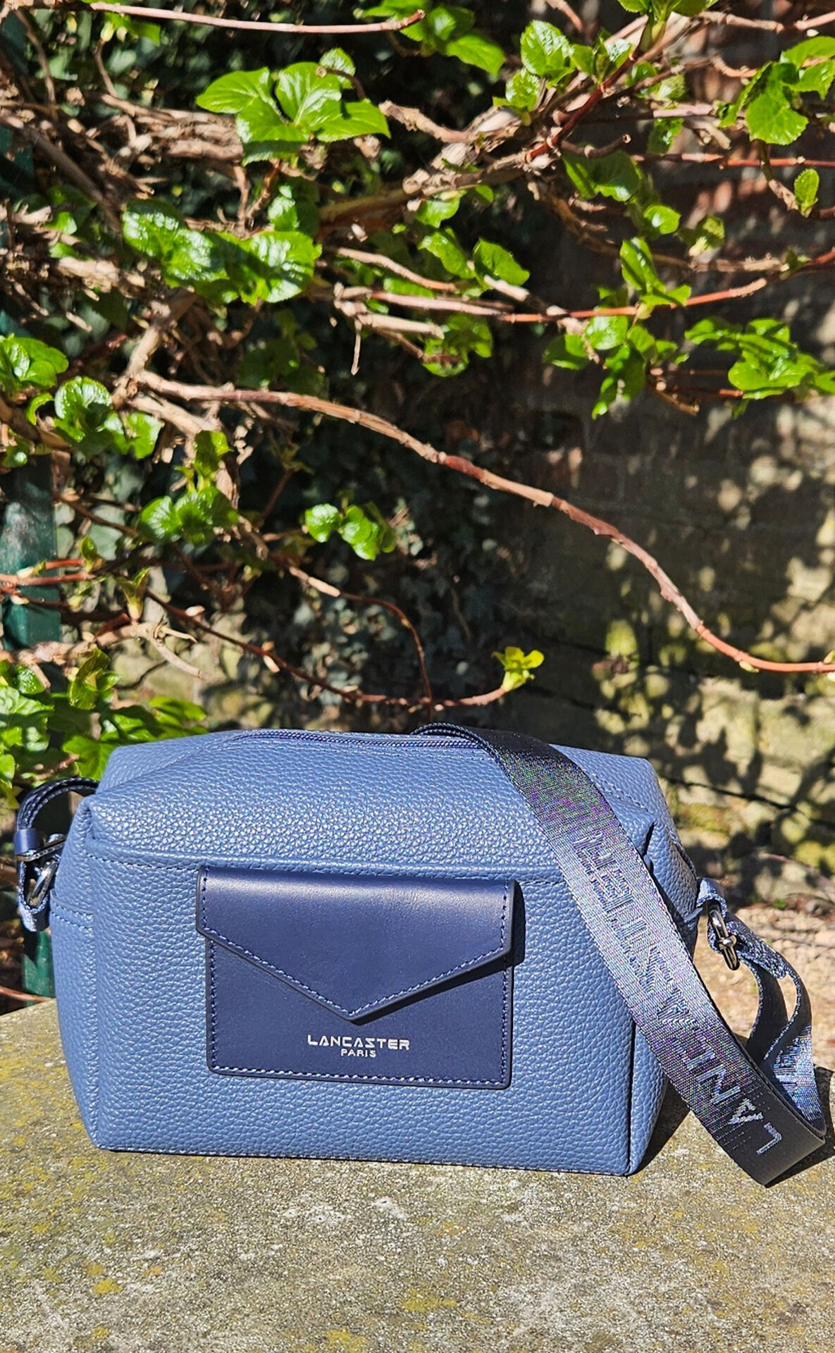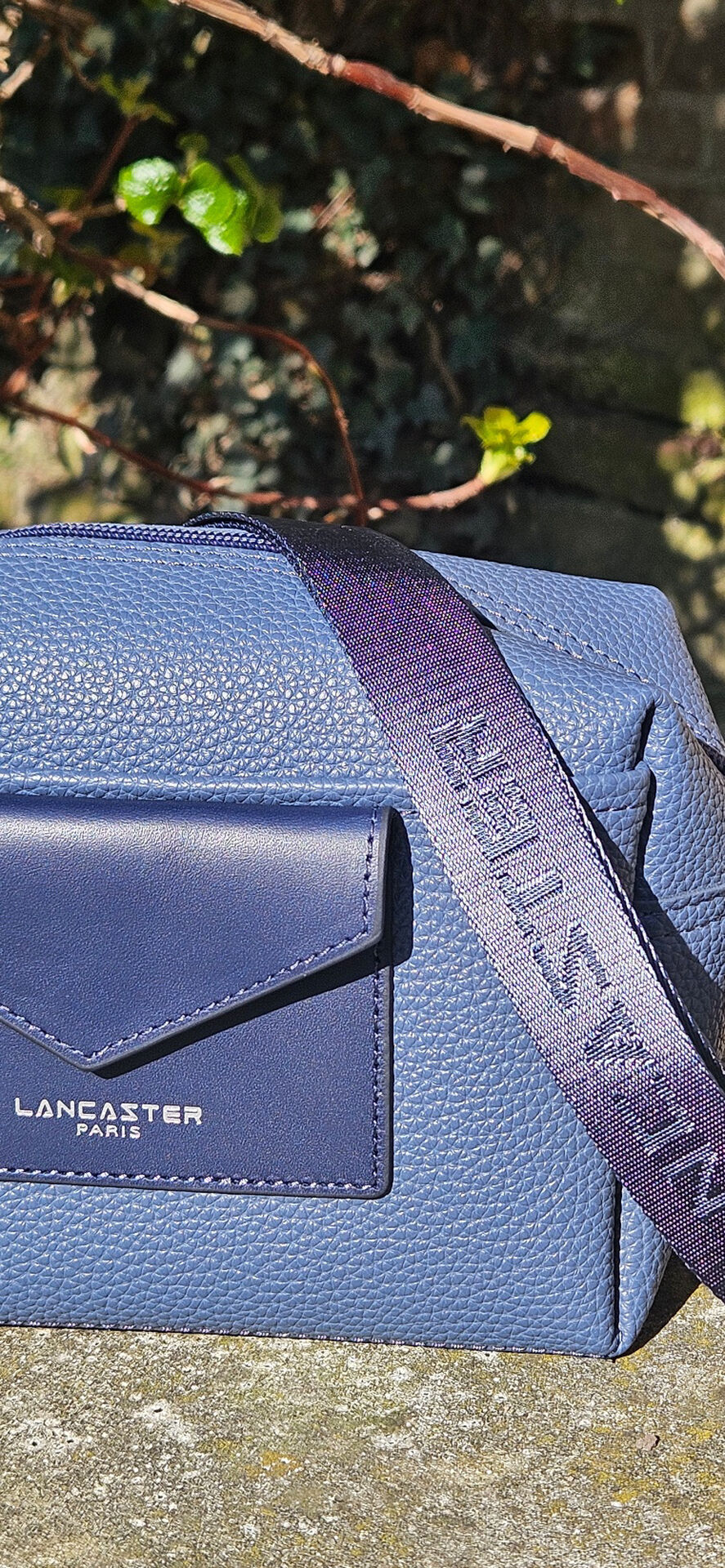 La large bandoulière réglable siglée Lancaster assure un porté croisé ou épaule très confortable.